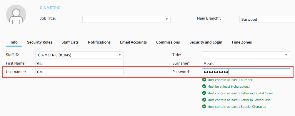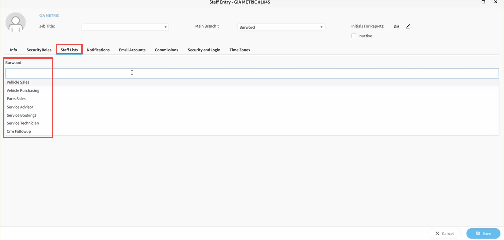 - In the Staff Lists tab, assign any Drop Down List you wish for their name to appear in.