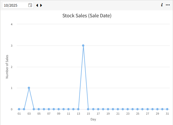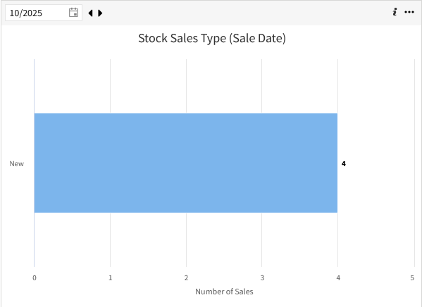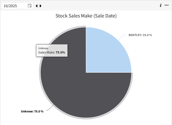 The right hand side displays sales data. Here you can view sales made on any given date, the type of stock that has been sold (new, used, demo), and the make of stock unit sold.