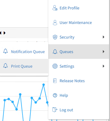 - From the navigation menu there will be a Queues section. Select Print Queue.
