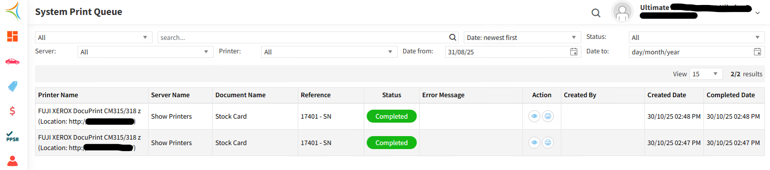 - This show pending and recently printed jobs to each of the attached SmartHubs.