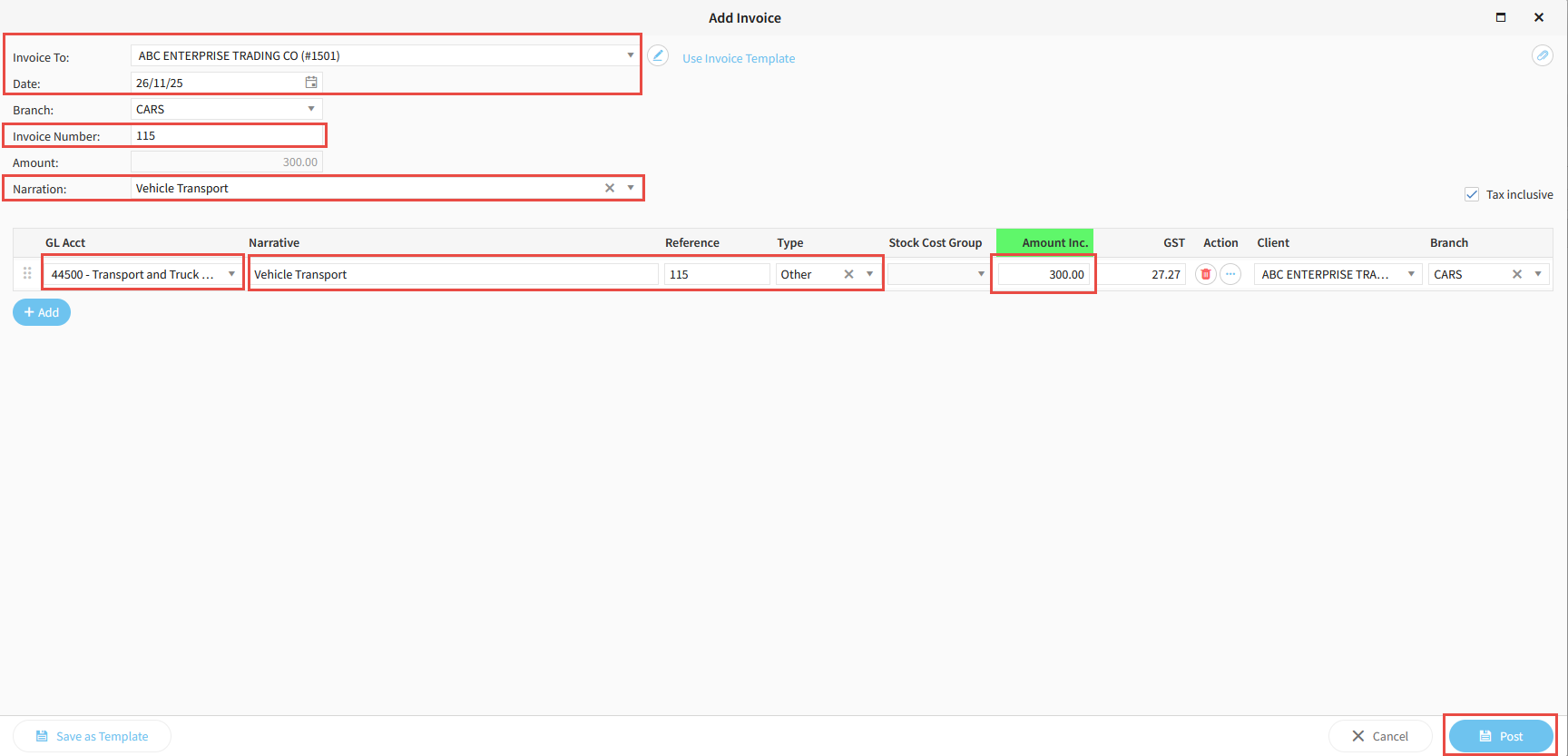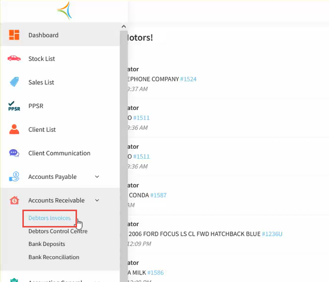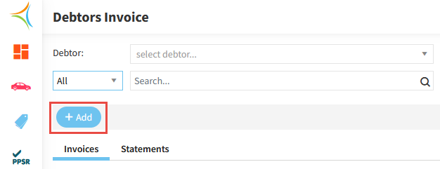 A debtors invoice needs to be added into Eclipse so that you can bank money received against it. You should NOT add a debtors invoice for vehicle sales, as the system will do this for you when a vehicle sale is created.