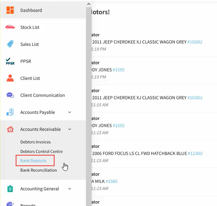 2. Click Bank Deposits.