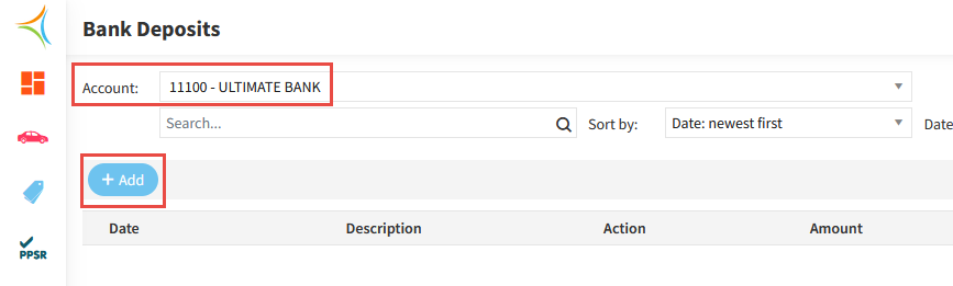 3. Select the Bank Account, then click Add.