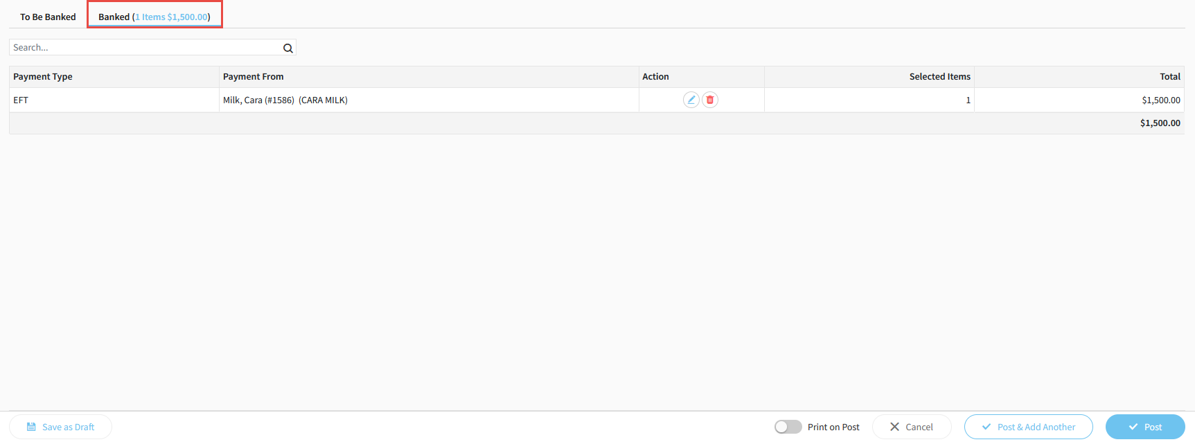 10. The amount has now moved out of the To Be Banked tab, and into the Banked tab