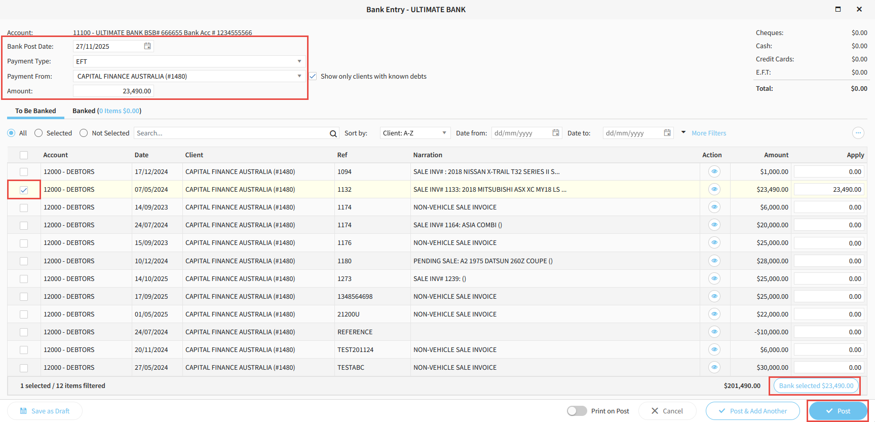 At the end of each day, or at the start of the following day, you should complete your daily banking. This process ensures that any money received is applied to its relevant invoice.